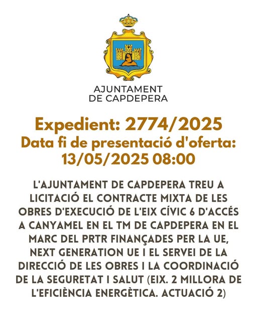 Aquest contracte s’emmarca al Pla de Sostenibilitat Turística en Destí de l’Ajuntament de Capdepera cofinançat a través dels fons del Mecanisme de Recuperació i Resiliència (Next Generation EU), tenint en compte els objectius de l’Agenda 2030 i els Objectius de Desenvolupament Sostenible.