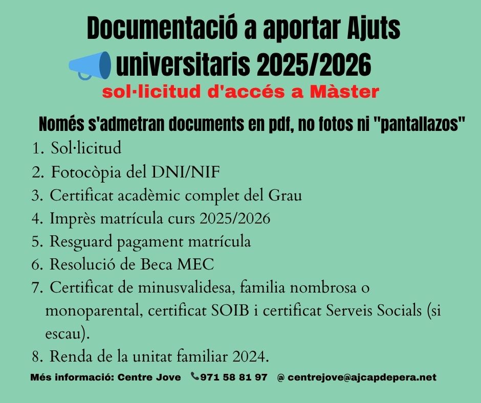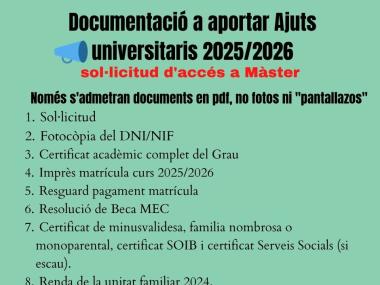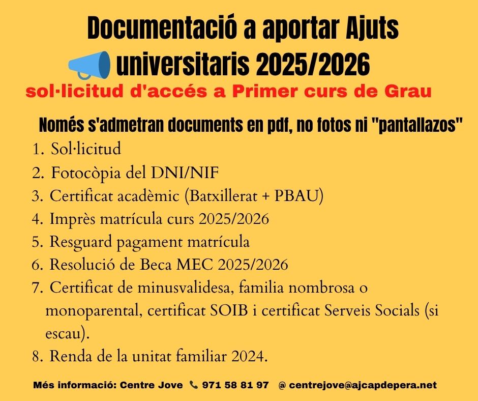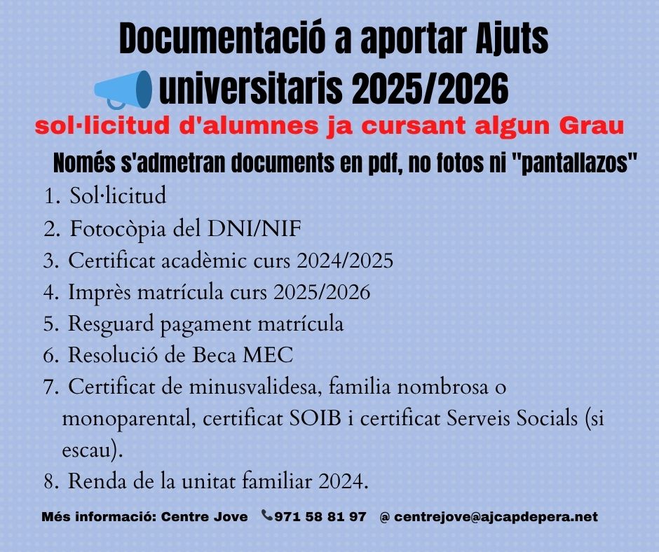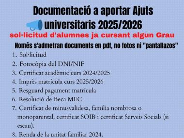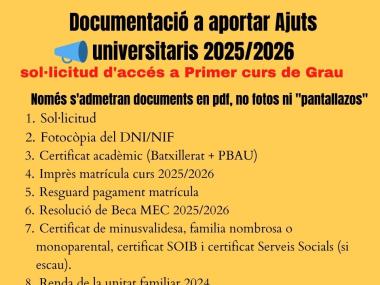 AJUTS UNIVERSITARIS 2025/2026 - CAPDEPERA
