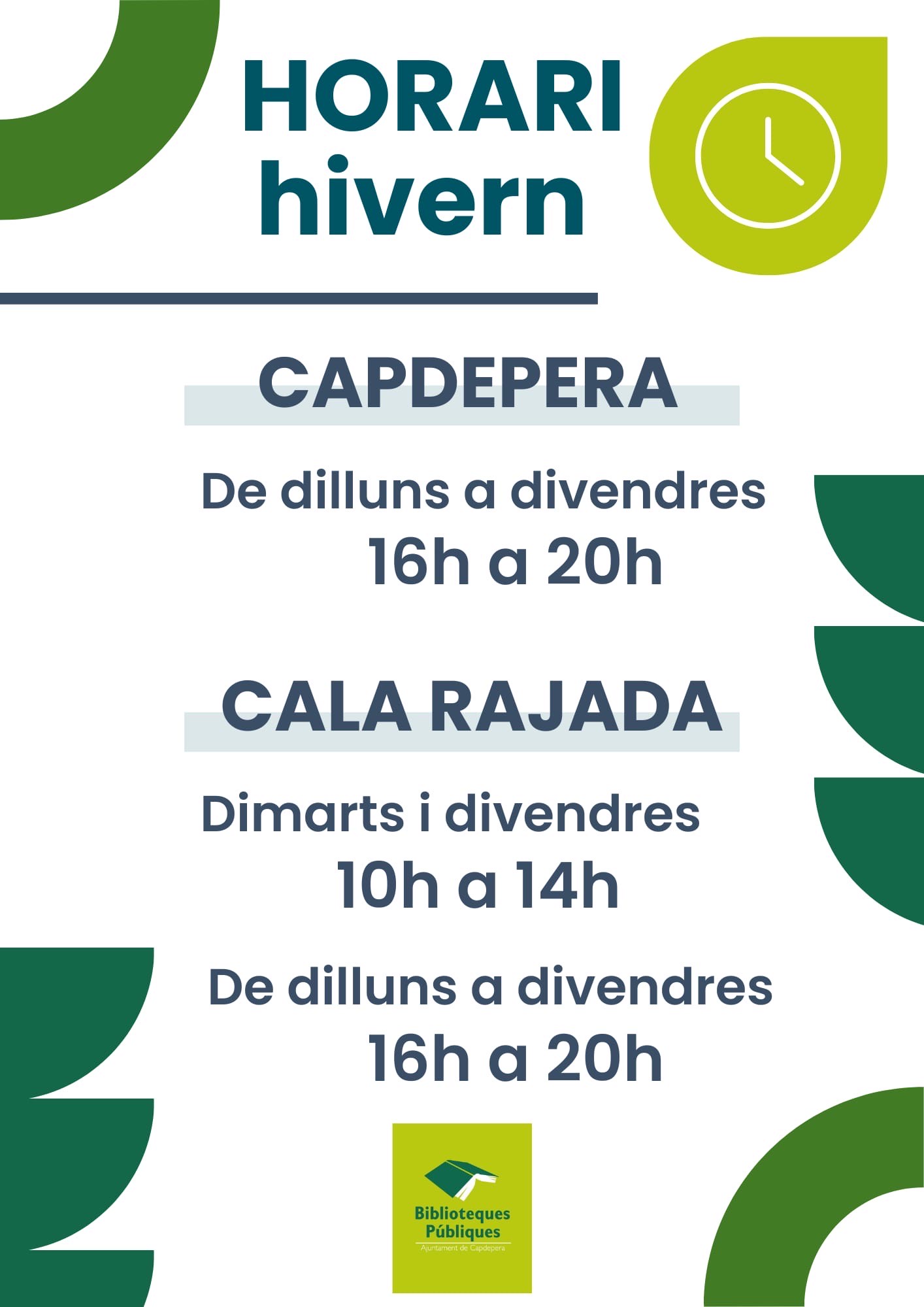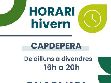 CALA RAJADADimarts i divendres: 10 h a 14 hDe dilluns a divendres: 16 h a 20 h