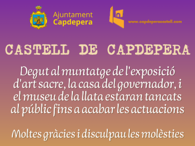 Degut al muntatge de l'exposició d'art sacre, la casa del governador, i el museu de la llata estaran tancats al públic fins a acabar les actuacions.