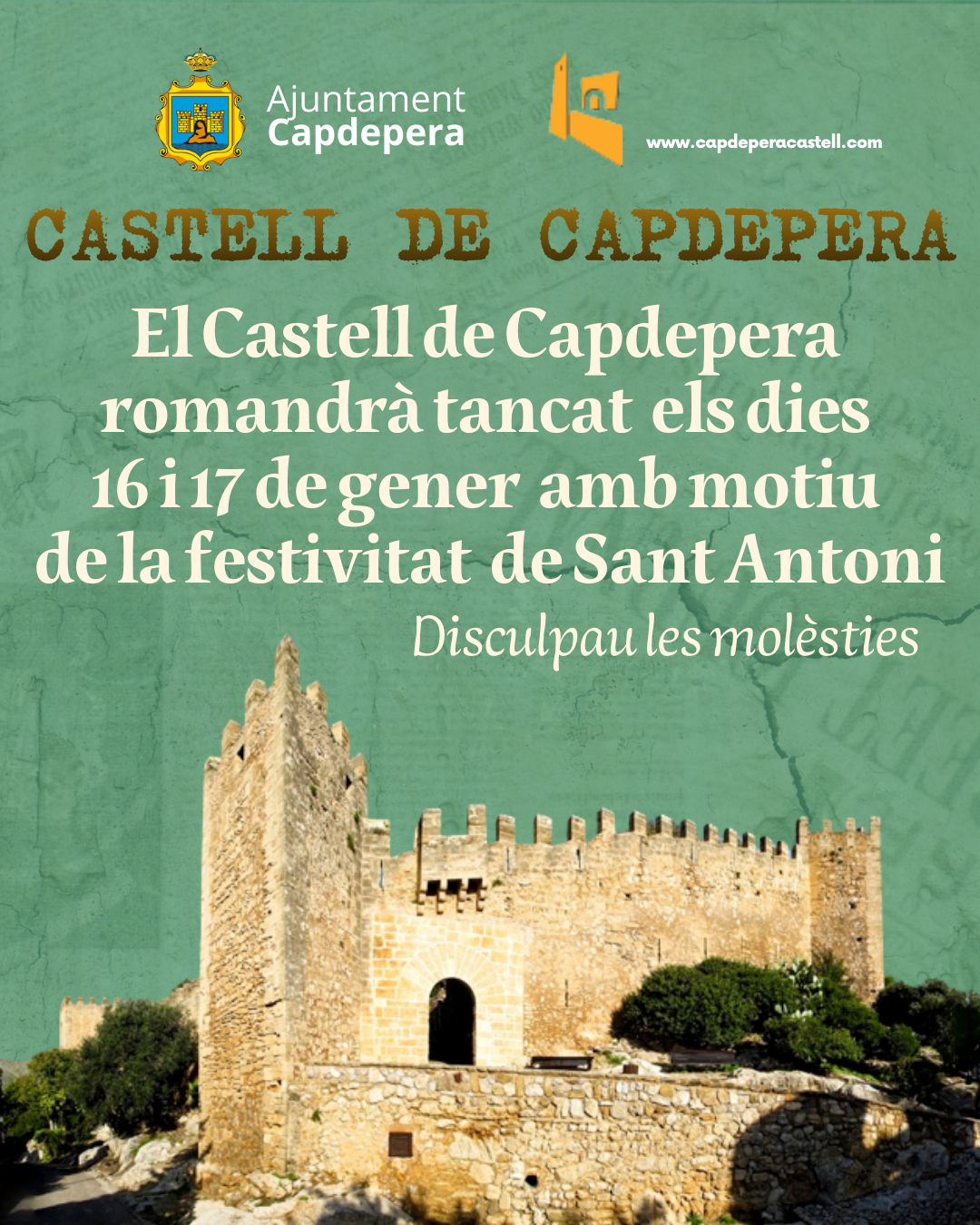 el castell de capdepera romandra tancat els dies 16 i 17 de gener
