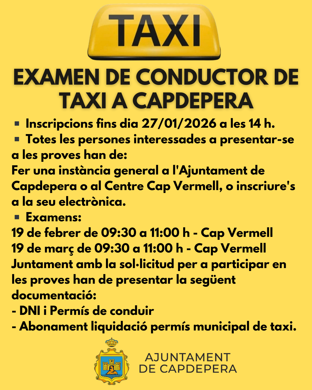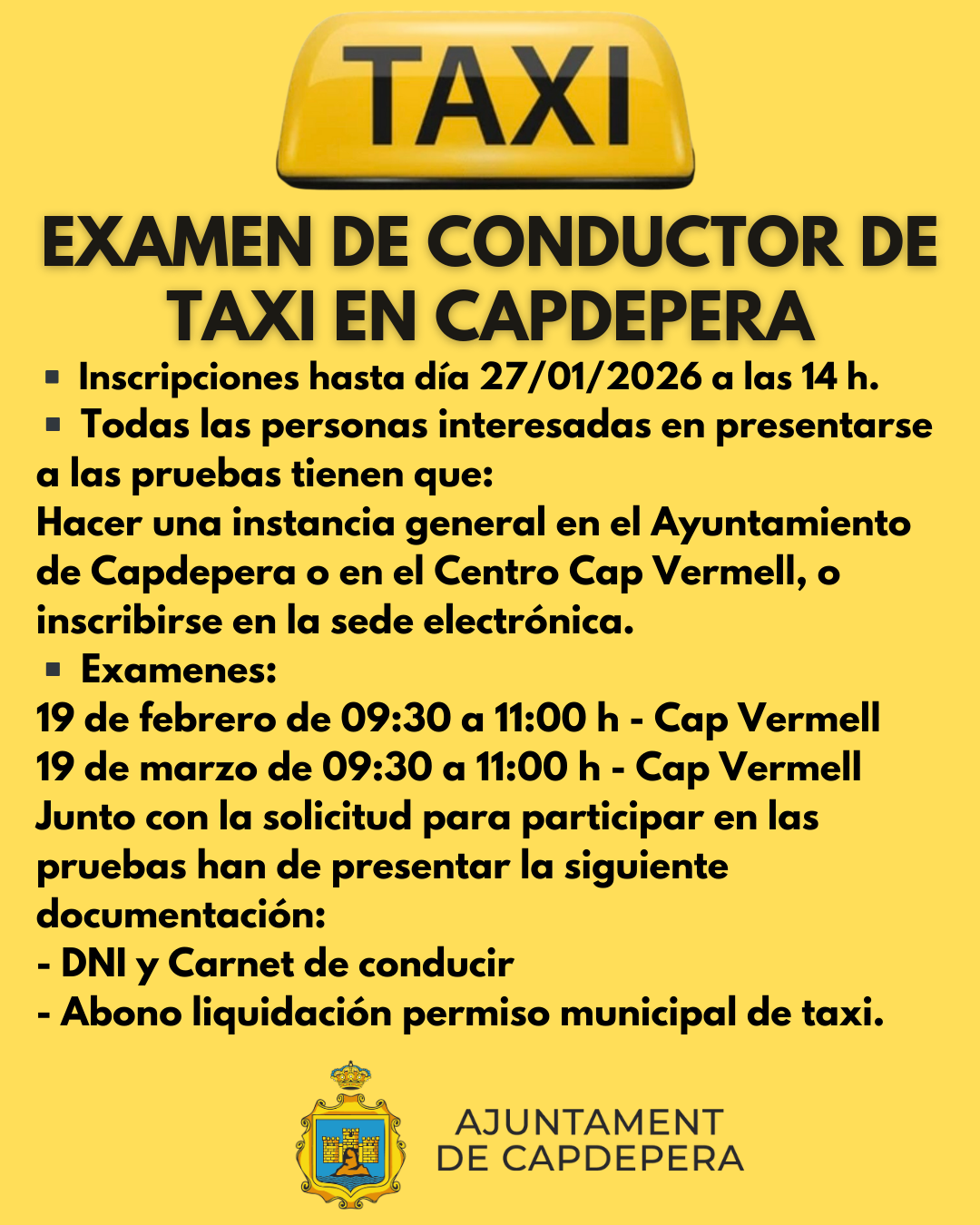 EXAMEN DE CONDUCTOR DE TAXI A CAPDEPERA