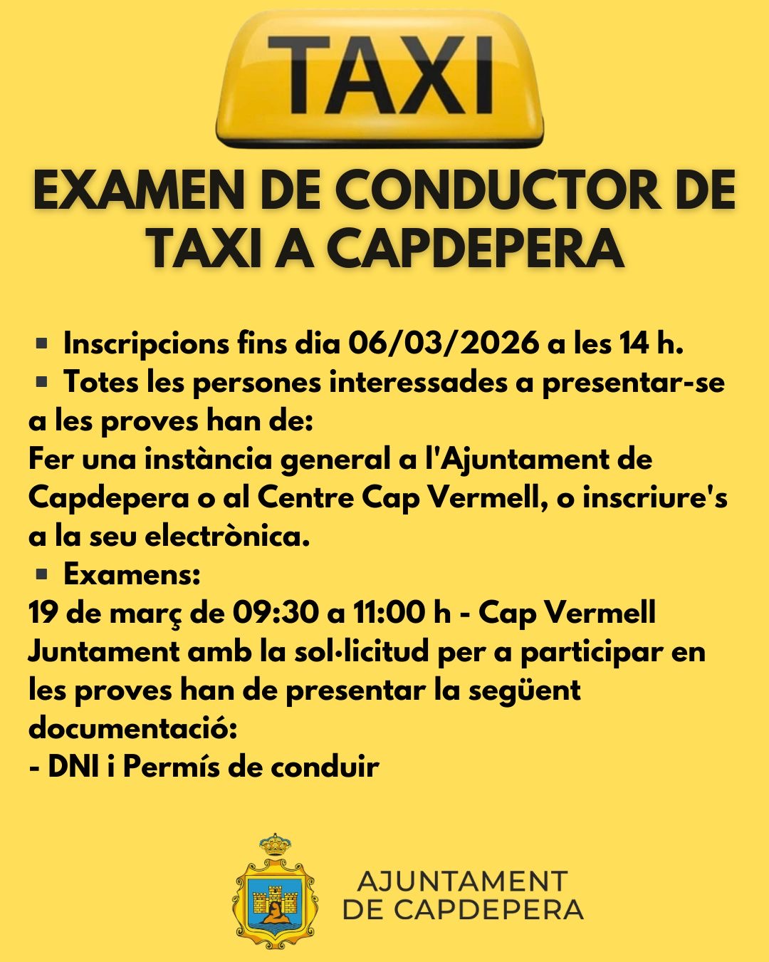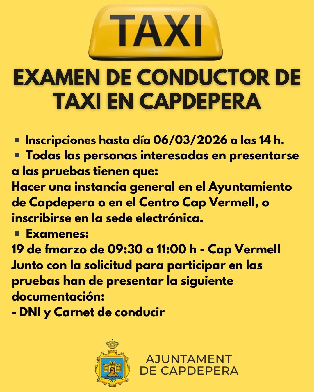 EXAMEN DE CONDUCTOR DE TAXI A CAPDEPERA