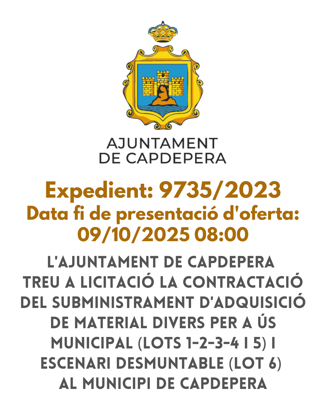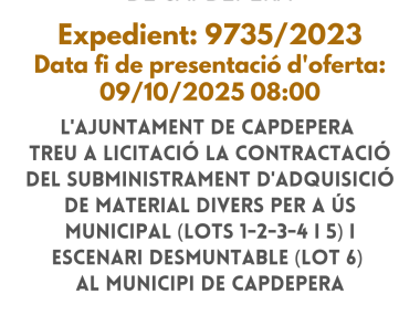 L'Ajuntament de Capdepera treu a licitació la contractació del subministrament d'adquisició de material divers per a ús municipal (lots 1-2-3-4 i 5) i escenari desmuntable (lot 6) al municipi de Capdepera