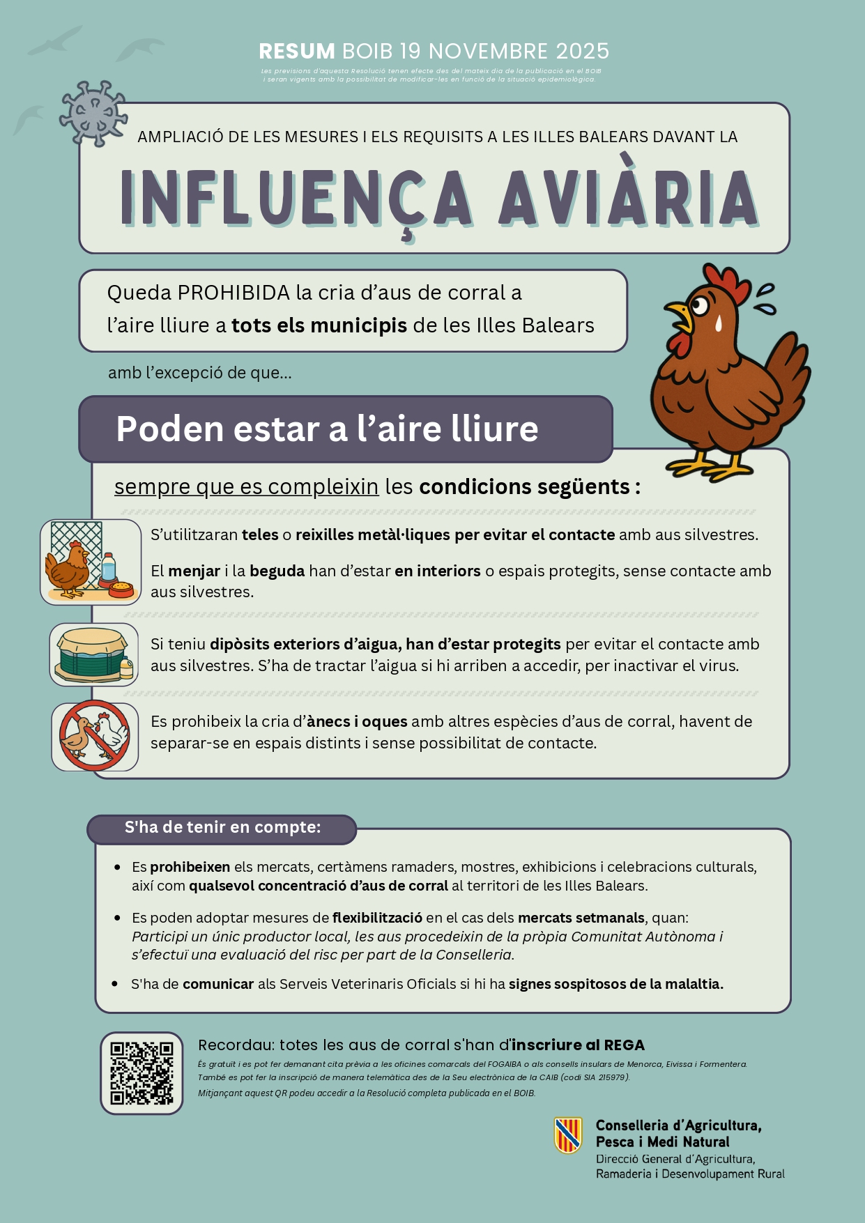 AMPLIACIÓ DE LES MESURES I ELS REQUISITS A LES ILLES BALEARS DAVANT LA INFLUENÇA AVIÀRIA.