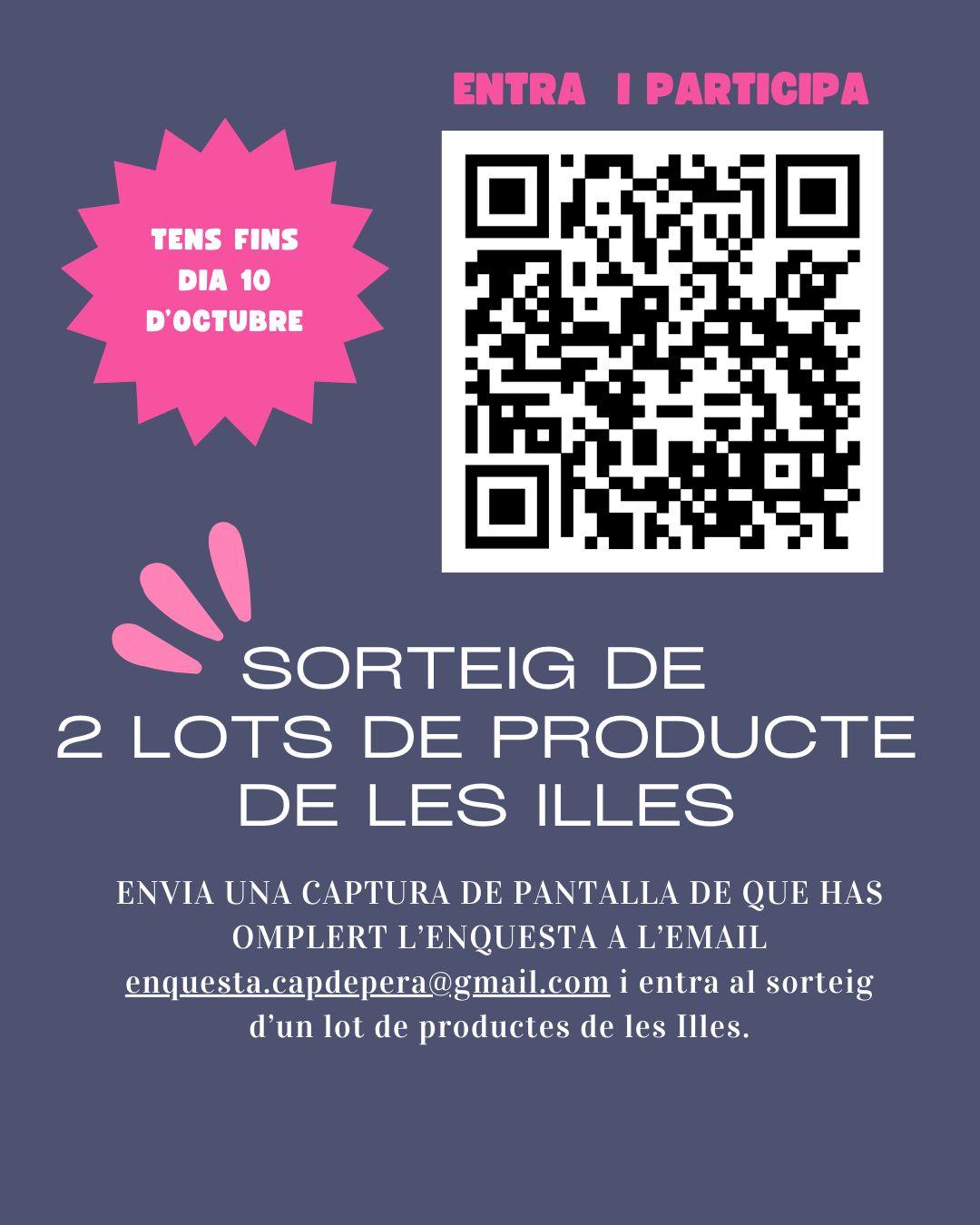 Para entrar en el sorteo, envía una captura de pantalla de que has completado la encuesta al correo enquesta.capdepera@gmail.com y participarás en el sorteo de un lote de productos de las Islas.