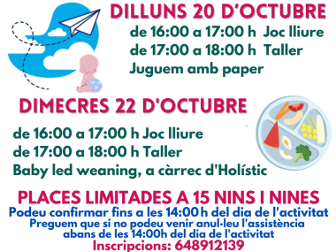 de 17:00 a 18:00 h Baby led weaning, a càrrec d'Holístic.