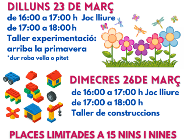 de 17:00 a 18:00 h Taller experimentació: arriba la primavera