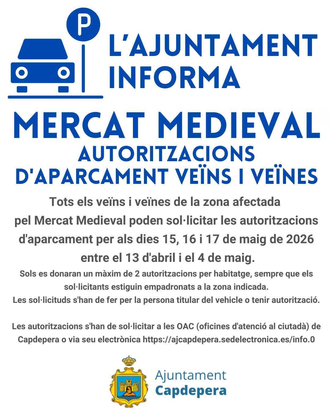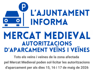 Tots els veïns i veïnes de la zona afectada pel Mercat Medieval poden per als dies 15, 16 i 17 de maig de 2026 entre el 13 d'abril i el 4 de maig.