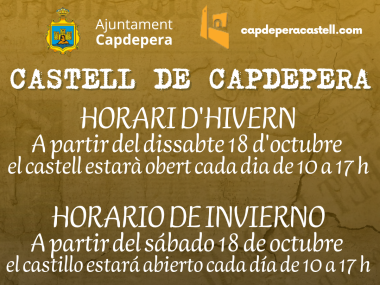 HORARIO DE INVIERNO: A partir del sábado 18 de octubre el castillo estará abierto cada día de 10 a 17 h