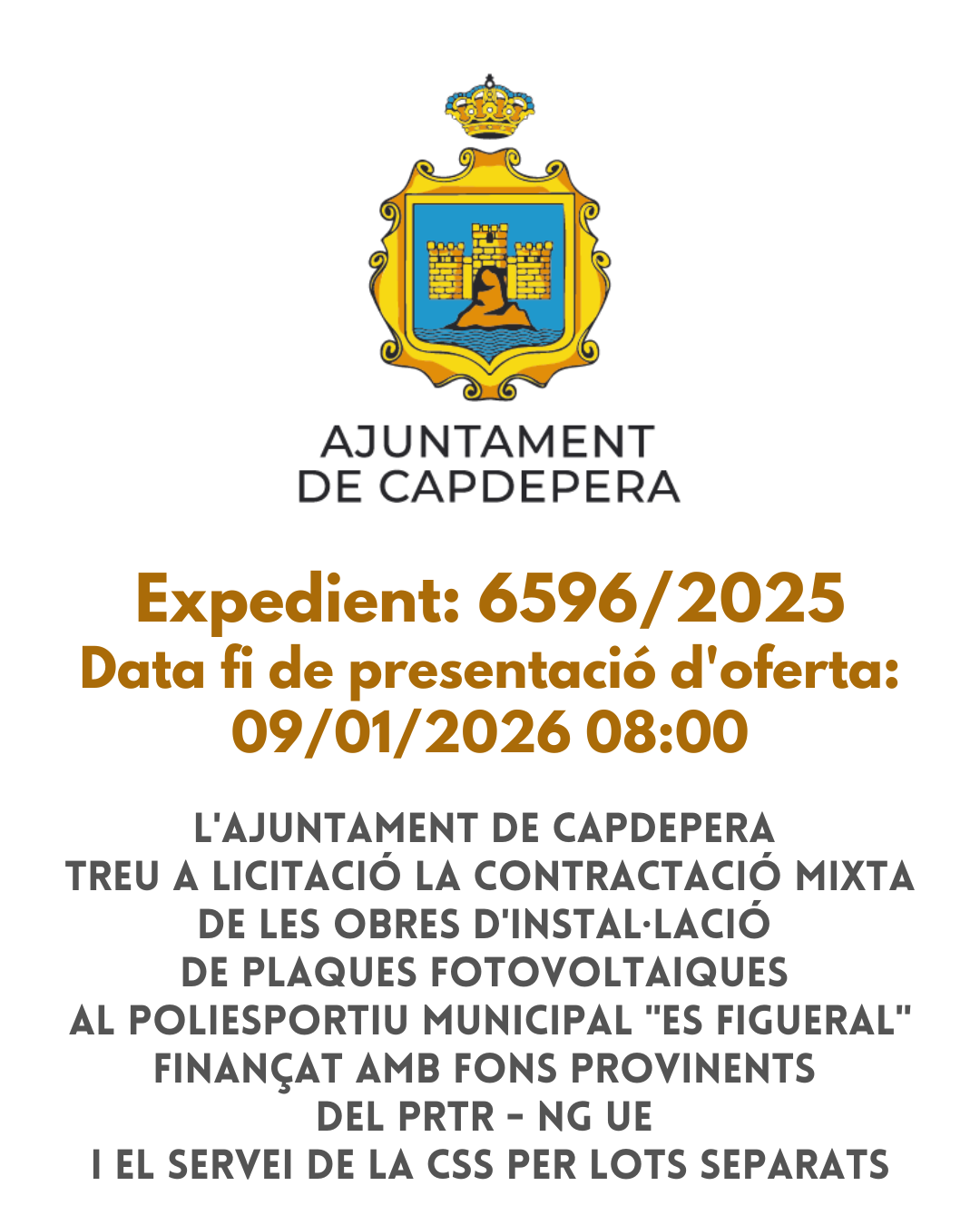 El Ayuntamiento de Capdepera saca a licitación la contratación mixta de las obras de instalación de placas fotovoltaicas en el Polideportivo municipal "Es figueral"