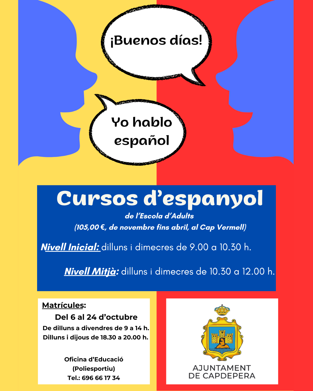 Cursos de español (105,00 €, de noviembre hasta abril, en el Centre Cap Vermell)