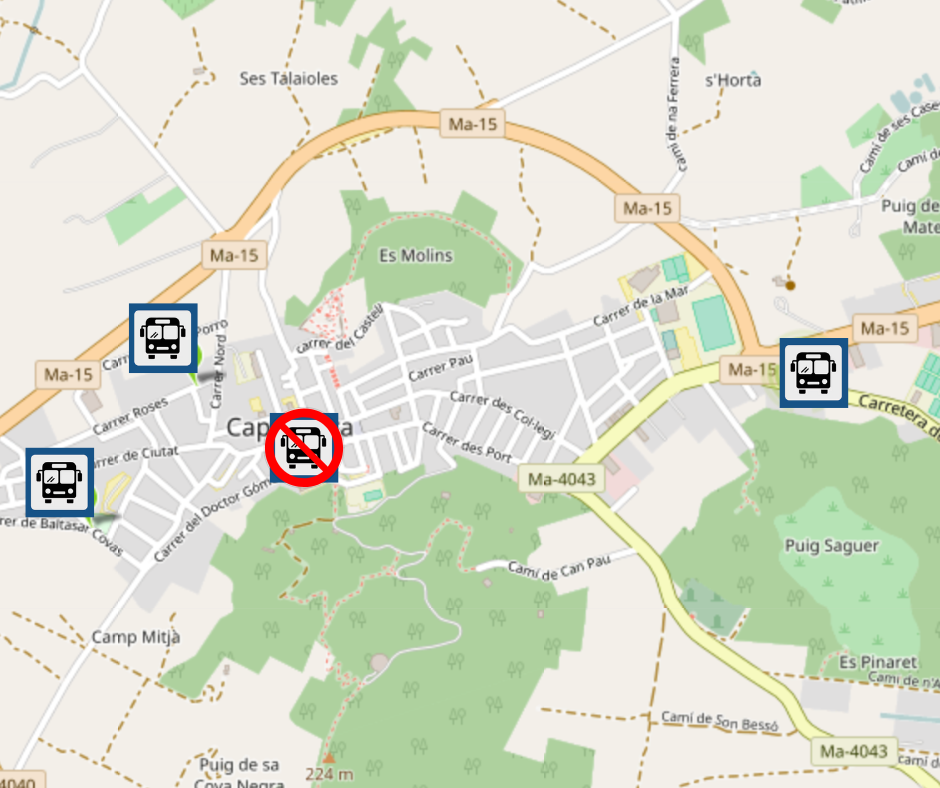 A causa de las obras que se realizarán al CEIP S'Alzinar, la parada del TIB de la plaza Constitució NO estará operativa a partir del próximo lunes 15 de diciembre de 2025 y hasta el día 4 de enero de 2026.